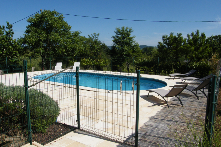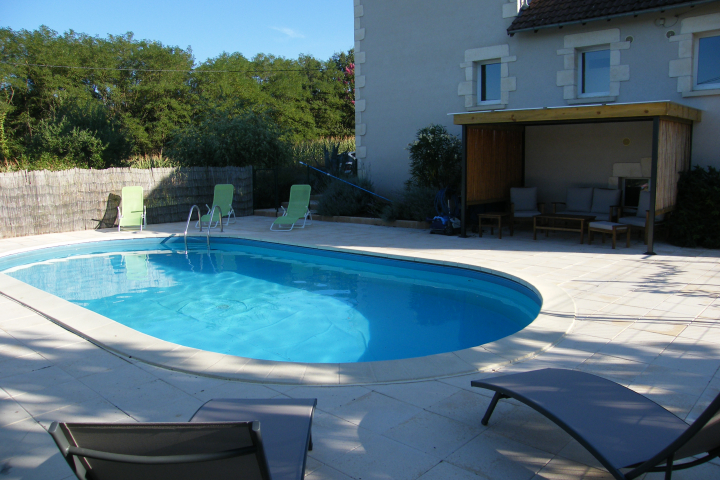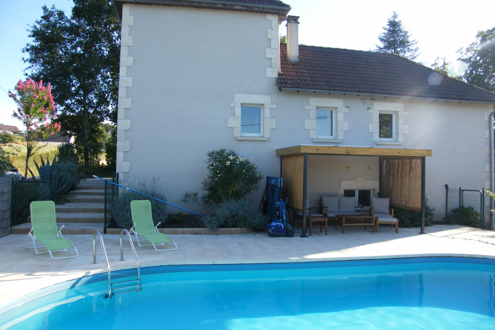 A l'extérieur: une piscine de 40 m2 destinée exclusivement aux locataires dans un cadre verdoyant avec 8 transats, une table de ping-pong, un terrain de pétanque (boules de pétanque mises à disposition), une terrasse couverte avec barbecue.
