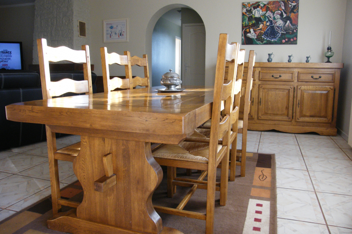 A l'intérieur: 4 chambres équipées d'un lit double (dont 2 de 160 cm), 2 salles de bain, une cuisine ouverte sur un le séjour et la salle à manger. Les draps sont fournis, mais pas les serviettes de toilette, ni les serviettes de bain.